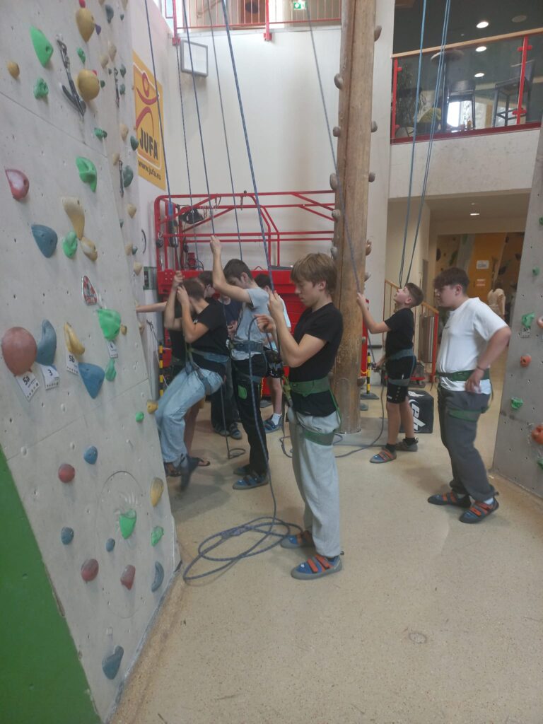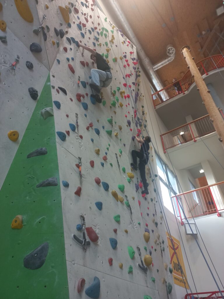 Auch so kann Turnunterricht stattfinden. In der Poly Pischelsdorf ist es uns wichtig, den Jugendlichen einen abwechslungsreichen Sportunterricht zu bieten und sie für Bewegung zu begeistern. Ein besonderes Highlight war der Besuch im City Adventure Center in Graz, wo sich die Schülerinnen und Schüler beim Seilklettern und Bouldern ausprobieren konnten.