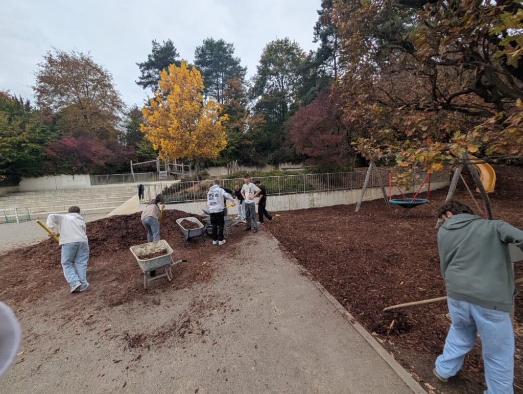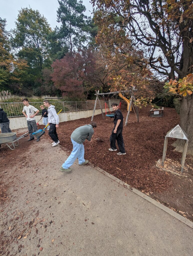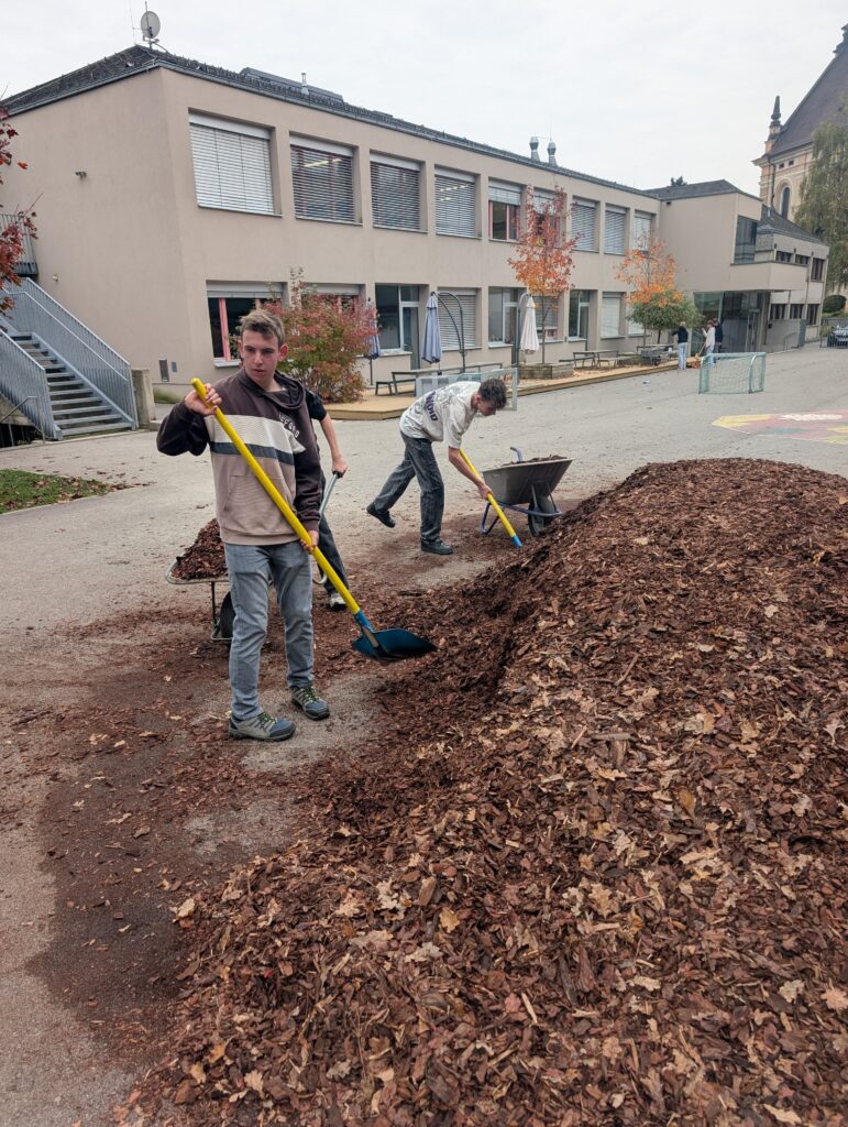 Gerne helfen wir in unserer Gemeinde mit, wo Unterstützung gebraucht wird. Auch heuer haben unsere Schülerinnen und Schüler tatkräftig in der Volksschule mitgeholfen und neuen Rindenmulch im Schulhof verteilt. Durch ihren Einsatz leisteten sie einen wertvollen Beitrag zu einem gepflegten und einladenden Schulgelände.